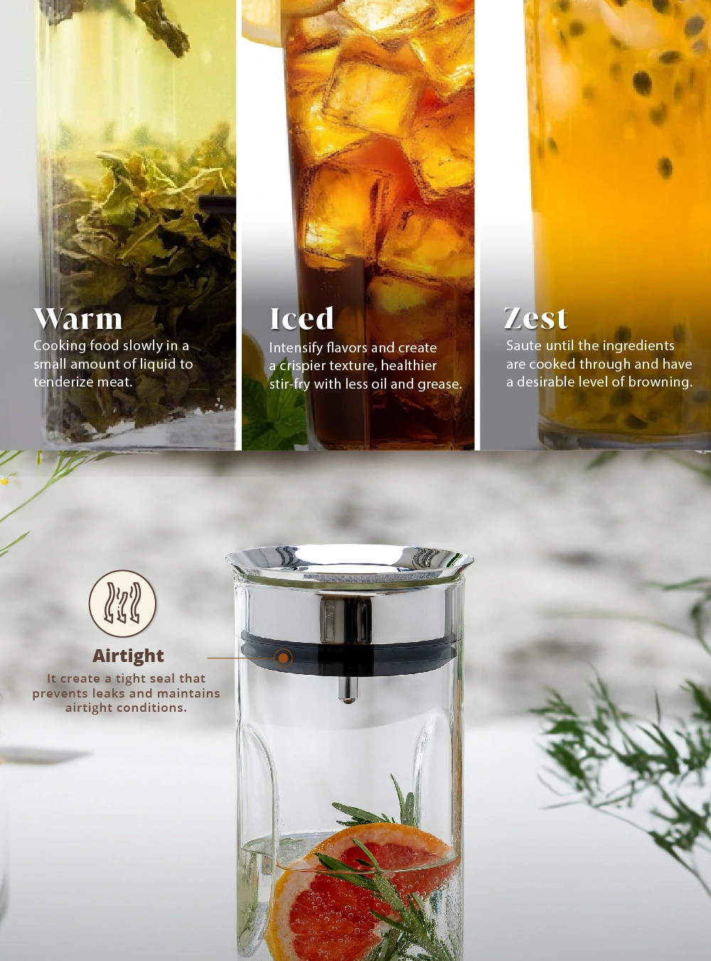 • Built-In Strainer: The lid features an integrated strainer. effortlessly separating unwanted particles from your beverage.