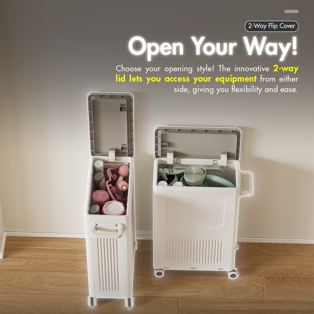 • Hinged Lid Design: The hinged lid allows for smooth opening and closing. making it easy to retrieve your exercise equipment quickly. It also keeps your items safely tucked away when not in use.