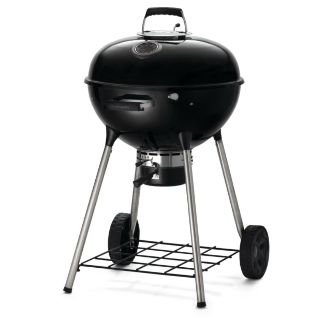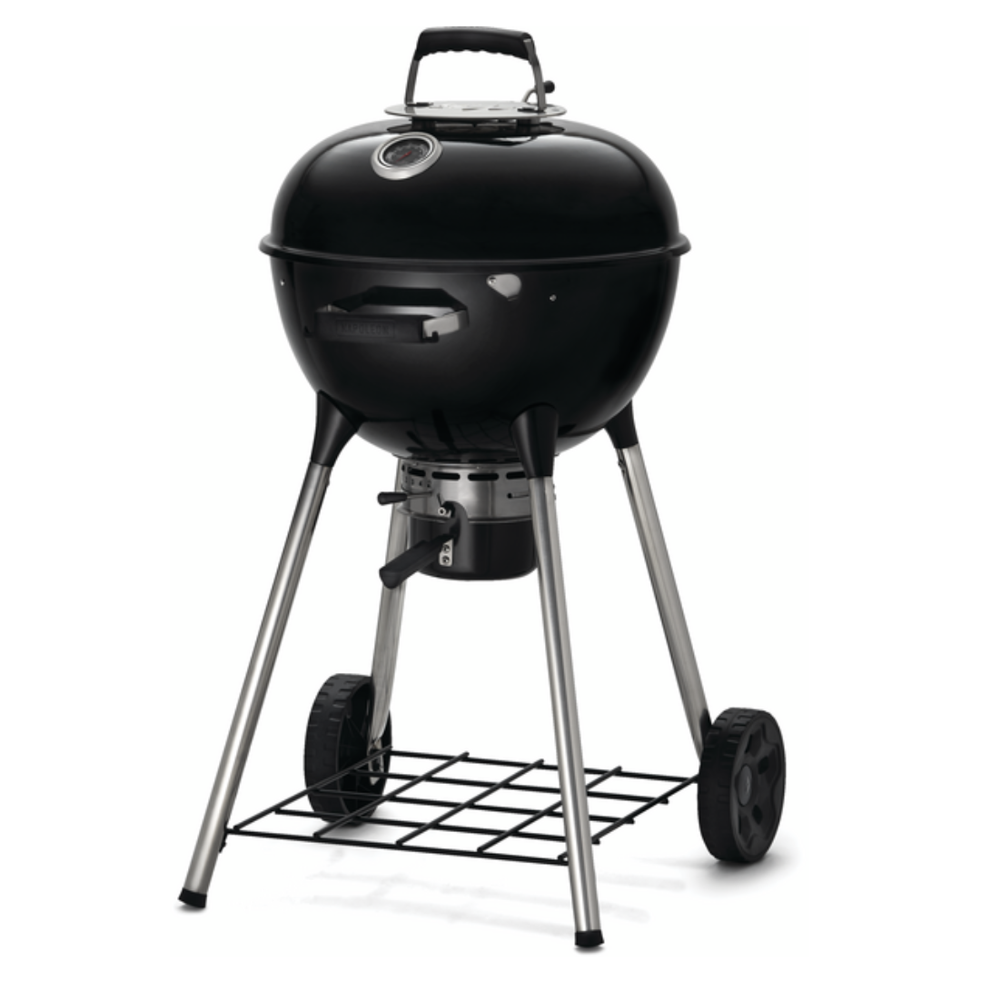 Ideal for charcoal enthusiasts. experience charcoal grilling with Napoleon’s compact and mobile Charcoal Kettle Grill. This grill can easily follow you to wherever the action is thanks to the sturdy all-weather wheels. Grilling. roasting. and smoking are a breeze. the hinged grids make it easy to reload charcoal or add wood for smoking. Charcoal is all about controlling heat and airflow. the stainless steel heat diffuser evenly distributes heat. and directs spent charcoal to the ash catcher. The improved PRO Air Control system increases airflow and temperature accuracy while preventing water from entering the grill. The lid features a built-in lid hanger and cool touch handle to keep your hands away from the heat while grilling.