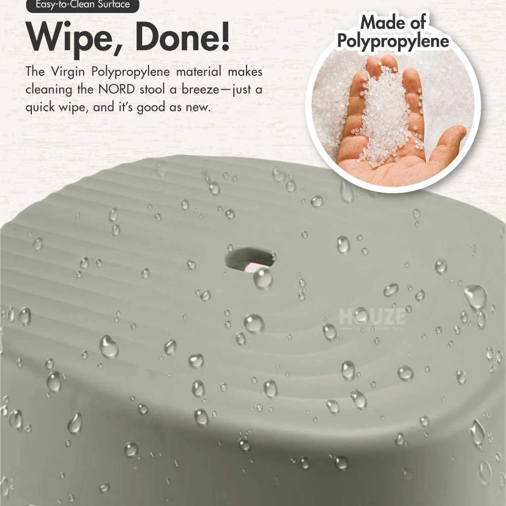 Virgin Polypropylene is at the core of this stool. chosen for its enduring strength and eco-conscious properties. In its pristine state. Virgin Polypropylene symbolises purity. adaptability. and resilience. Its DNA is rich with qualities representing our commitment to sustainability and modernity. The minimalist deeply influences this series. yet the ever-so-sophisticated nature of Nordic design and our stool epitomises that essence in every curve and contour.