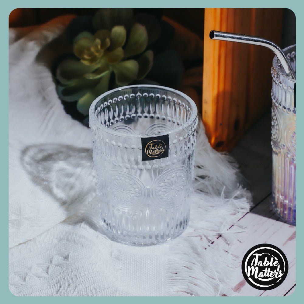 The TAIKYU Lace Drinking Glass is not merely a drinking vessel but a proclamation of style. a remarkable accessory that enhances the atmosphere of your dining moments. Each glass cradles your favourite beverages with an exquisite touch. whether a sparkling cocktail. an elegant wine. or a rejuvenating glass of water. making every occasion feel exceptional.