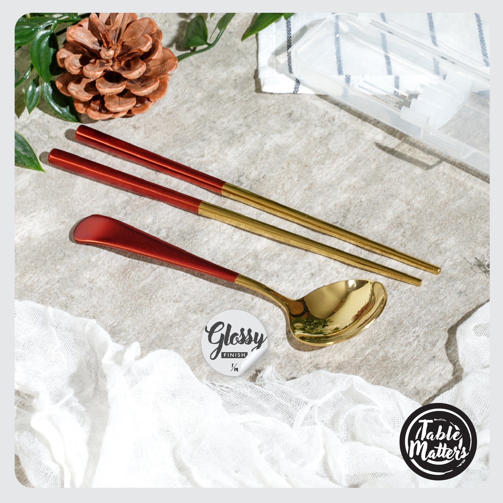 The ensemble presents a pair of meticulously crafted spoons and chopsticks nestling within a bespoke holder that speaks volumes of class and functionality. Each utensil is forged from high-grade stainless steel. ensuring a companionship that stands the test of time. embodying durability and unmatched quality. The holder. a manifestation of thoughtfulness. is carved from 100% Polypropylene. ensuring safety and robustness.